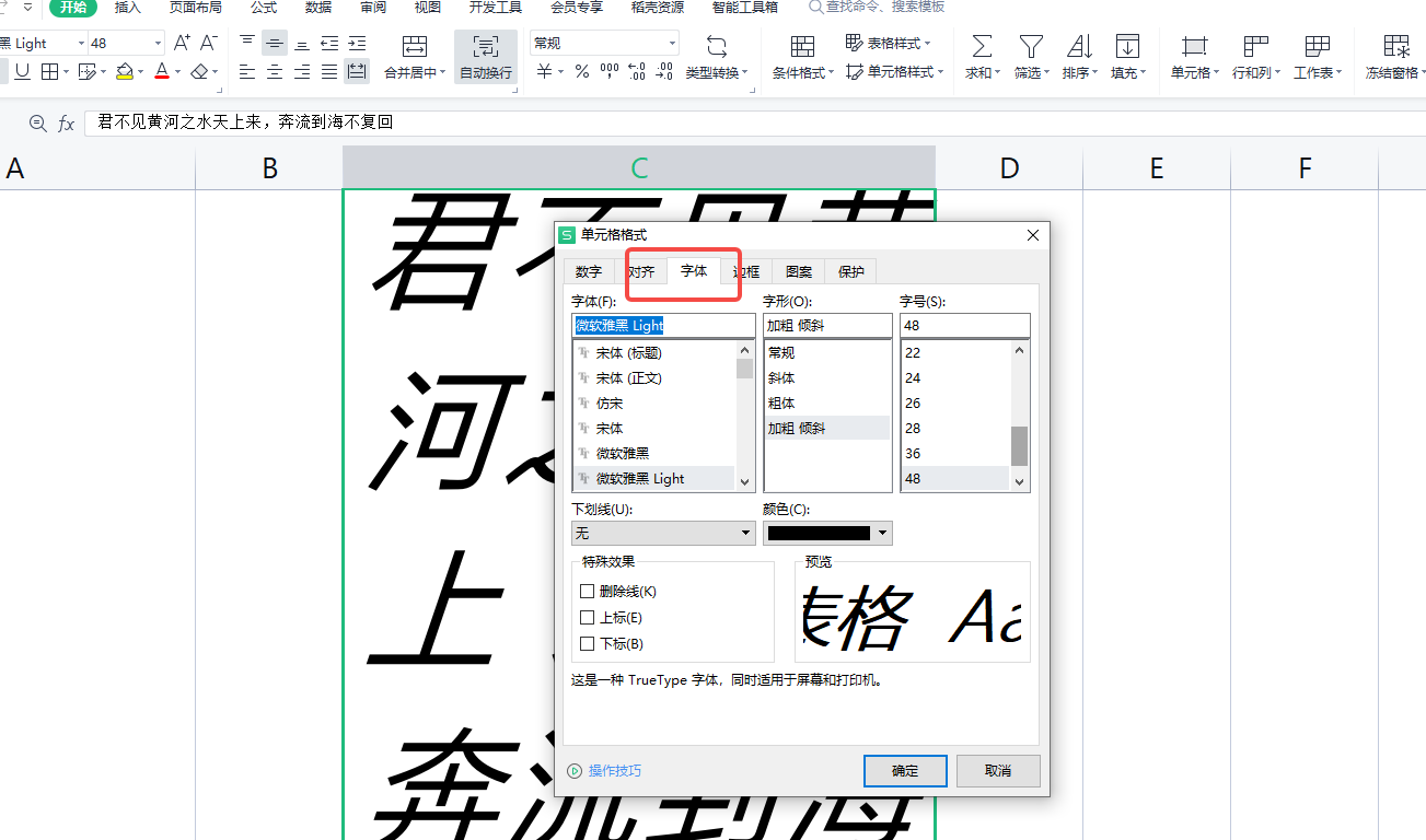 如图所示,我们想调整单元格中诗句的行间距。
