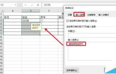 5、当然这里我们还可以设置输入信息的提示,这样以后点击设置的单元格的时候,就会提示我们输入的信息,这样可以防止别人正确的操作。