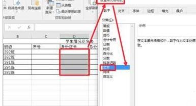 6、为了让大家进一步了解,这里身份证号码,这里,我们先选择数据区域,然后点击鼠标右键,这里我们在单元格格式中先设置单元格格式为文本型数据。因为如果身份证号码不设置为文本型数据的话,这样就会显示科学计数法显示。