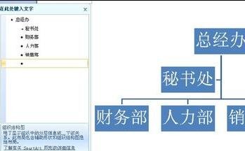 步骤四:在左边有一个“在此处键入文字”窗口,依次填入组织结构名称。