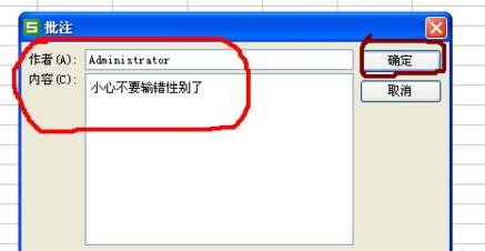 3、然后就会弹出”批注“设置框,在设置框中输入作者和内容,内容就是要注意的事项,接着点击”确定“。