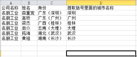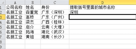 ③依然是利用单元格填充的方法,完成余下的数据录入。这样,一份单元格括号里面的内容我们就已提取出来了。
