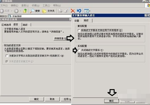 控制面板→区域和语言选项→语言→详细信息→高级→不要勾选 关闭高级文字服务→确定