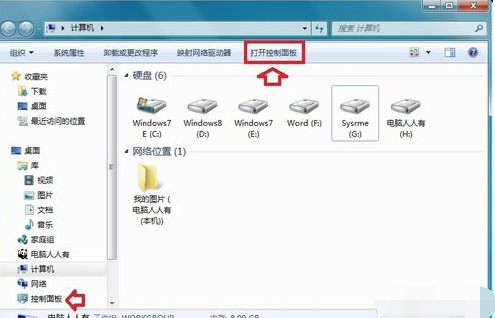 1、这种情况通常发生在微软拼音输入法自动调出所致。如果对微软的拼音输入法不感冒,完全可以将其删除默认状态。使用Windows+E快捷键,调出资源管理器→打开控制面板。