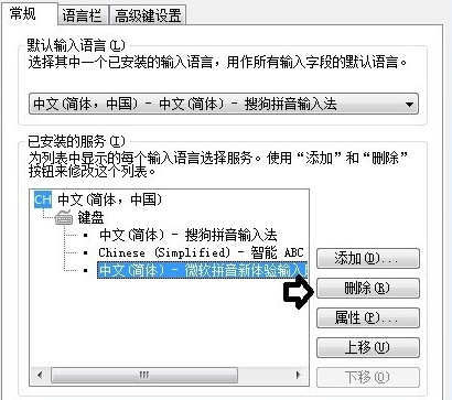 4、在弹出的设置框中→点选不需要的拼音输入法→删除→确定。