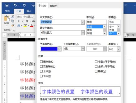 4、文字颜色设置,在Word窗口中即可看到设置后的效果。如图所示