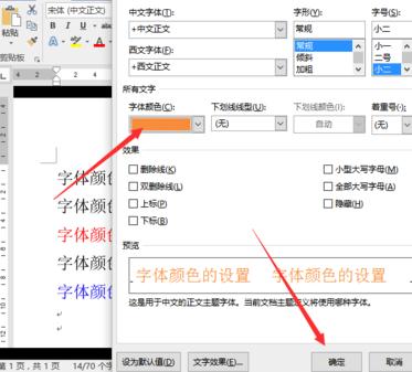 12、颜色设置好以后,然后再点击“确定”按钮,关闭字体对话框即可。如图所示