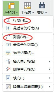 2、在工具栏找到行和列。点击行和列,点击行高和列宽输入数值。