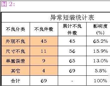 制作柏拉图步骤1:建立数据汇总分析表,如图1所示