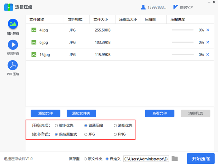 文件添加好之后,在转换前可以对压缩选项及输出格式进行自定义设置;
