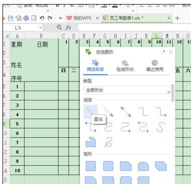 第四步,”任务窗口“——”自选图形“形状中选择直线。
