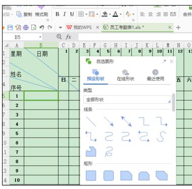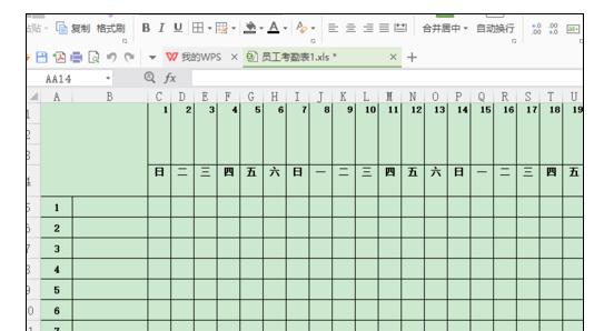 第二步,确定好行距,列宽后,开始把标题写上,例图下,“星期”“日期”中间用空格隔开,然后按键盘“Alt+Enter”换行,键入“姓名”“序号”。再通过"垂直居中,左对齐,右对齐“调节字的位置。