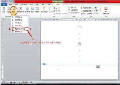 步骤七:如果需要将第一页显示“1”,重复第一步骤,双击页面底部位置。一次选择“页码”、“设置页码格式”