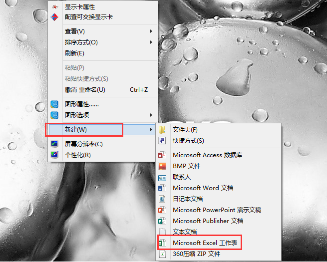 桌面单击右键,新建excel工作表