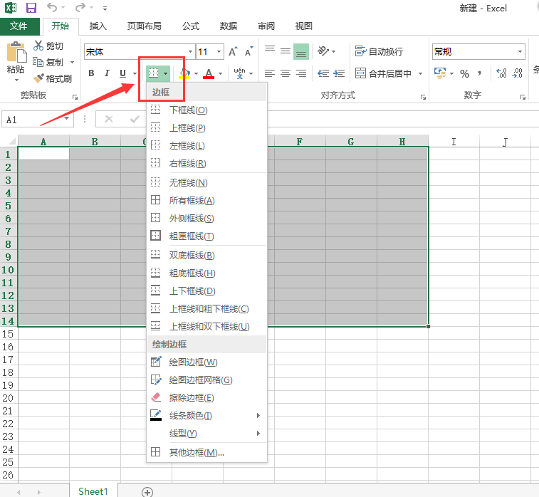 区域选取后点击工具栏边框按钮