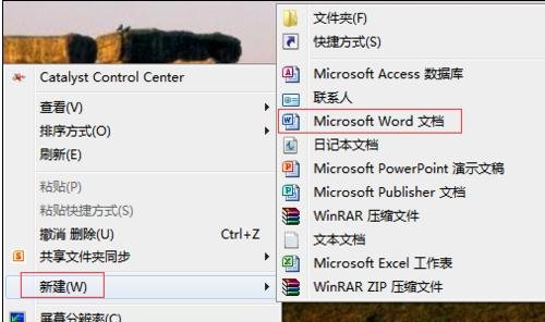 步骤一:在桌面空白处点击右键,出现多个选项,选择“新建”,并在其下拉目录中选项“word文档”选项