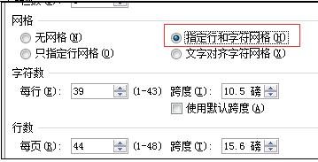 步骤六:找到该设置中的”网络“设置选项,选择”指定行和字符网格“的选项,将出现如下设置界面