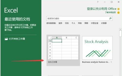 1、在计算机桌面上的excel程序图标双击鼠标左键,将其打开运行。并点击“空白文档”选项,新建一个空白Excel文件。如图所示