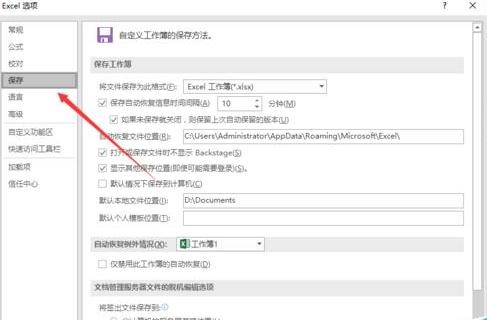 5、在“Excel选项”对话窗口中,选择左侧的“保存”选项卡栏。如图所示