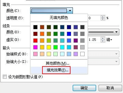 3、双击刚刚画出的图形,单击填充颜色旁的小三角,选择填充效果。