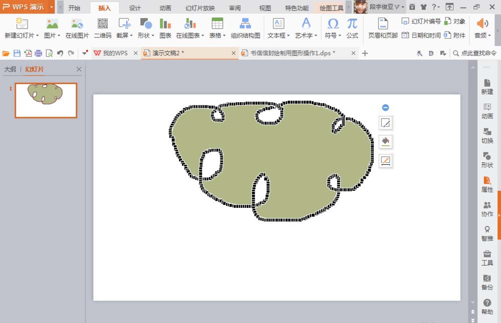 ??8、如果觉得图片不够美观,可再次选择S自由曲线形状,再次绘制形状,按下鼠标左键点击一下出现一个顶点,再次点击一下出现下一个顶点,不断的按下鼠标左键点击,就可绘制成由平滑曲线组成的图形了。