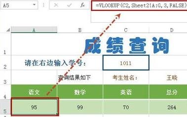总分:=VLOOKUP(C2,Sheet2!A:G,6,FALSE)