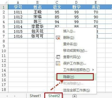 查询步骤10:为了避免用户看到Sheet2工作表的成绩信息,可以将其隐藏。点击Sheet2右击选择“隐藏”。