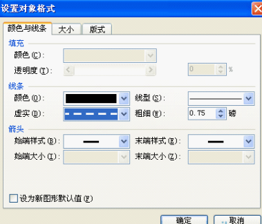 2、双击直线,弹出设置对象格式对话框,将线条设置为虚线,线条的宽度设置为12毫米
