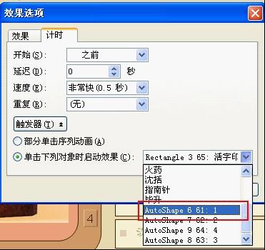 5、将一整串动画选定,触发器:选项1