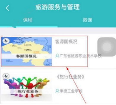 2、进入到旅游服务与管理的课程页面中点击客源国概况;