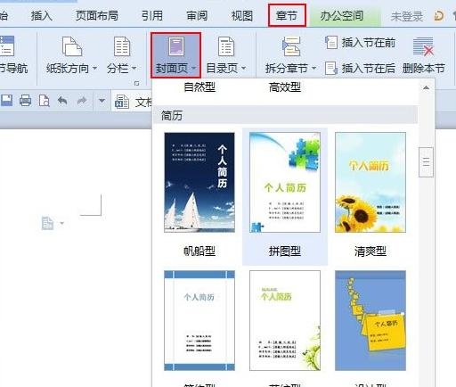 启动WPS文字,单击菜单栏--章节--封面页,我们可以看到很多分类。