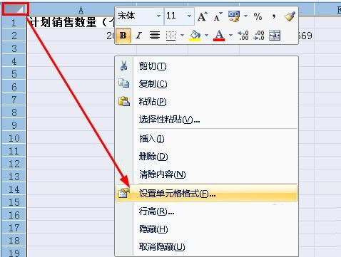 2、点击工作表的左上角的位置,如图所示,选中整个工作表,右键单击工作表,选择【设置单元格格式】