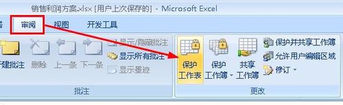 4、接着我们在菜单栏上执行:审阅--保护工作表