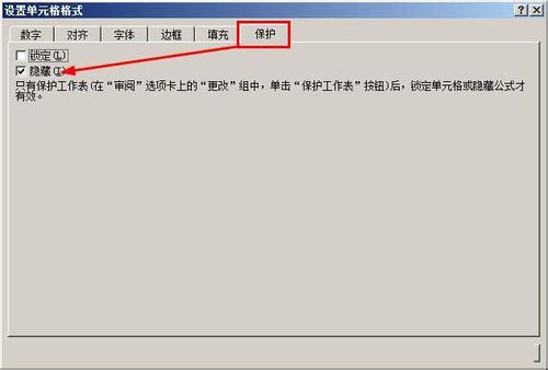 3、在设置单元格格式对话框中,我们切换到【保护】面板,然后点击【隐藏】,点击确定按钮。返回到工作表