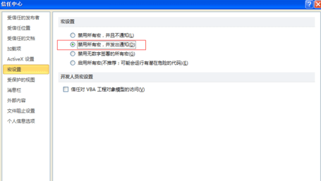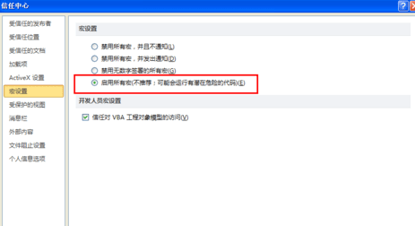 一般情况为了安全着想,应该是禁用所有宏,并发出通知,就是开始看到的那个黄色的警告。如果遇到上面那种情况也可以点击启用所有宏。但使用过后,记得把宏设置回禁用。