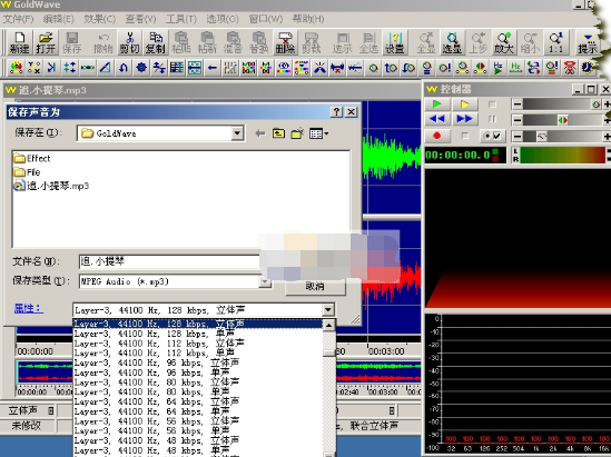 单击“打开”按钮,或者“文件”——“打开”,选择一个声音文件