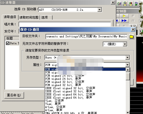 选择CD后,点击保存,直接可以另存为您需要的音频文件