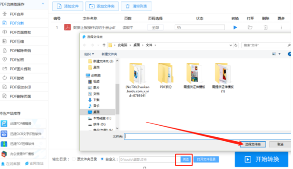 第三步,接下来需要解决拆分好的PDF文档存储的问题,在页面下方的【输出目录】处选择一个合适存储位置,点击【选择文件夹】即可。