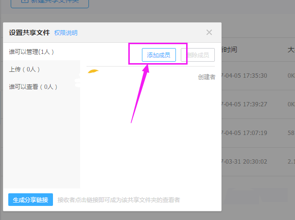 6、点击【添加成员】。选择自己要添加的成员进行添加即可。