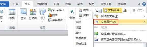 ②然后在下拉列表中选择文档属性,可以看到有很多属性可以添加,我们举例来添加发布日期。