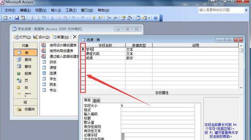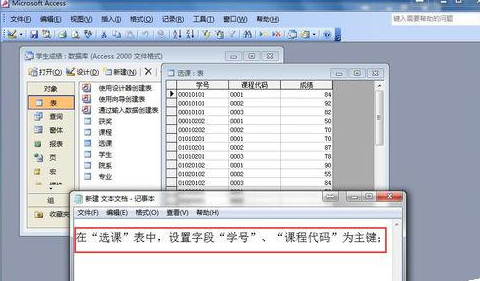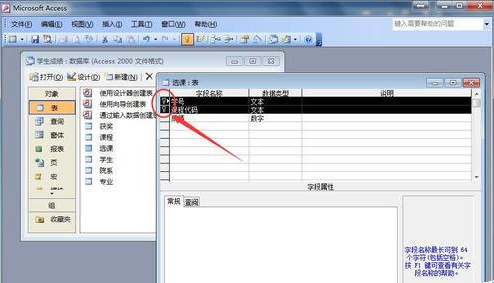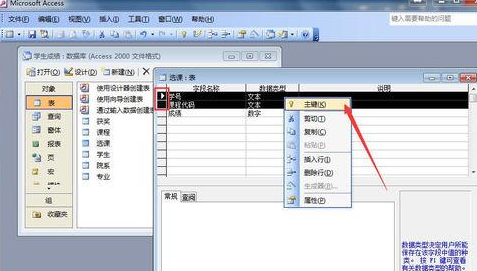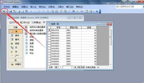 1、打开Access数据库,双击打开我们要设置主键的表。如图所示,我们要设置“选课”表的“学号”、“课程代码”为主键,如何操作呢?