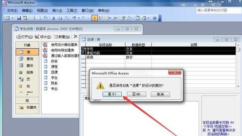 6、如图你忘记保存了,在关闭表的时候,Access系统会提示你保存的。这里我们单击“是”按钮即可完成。
