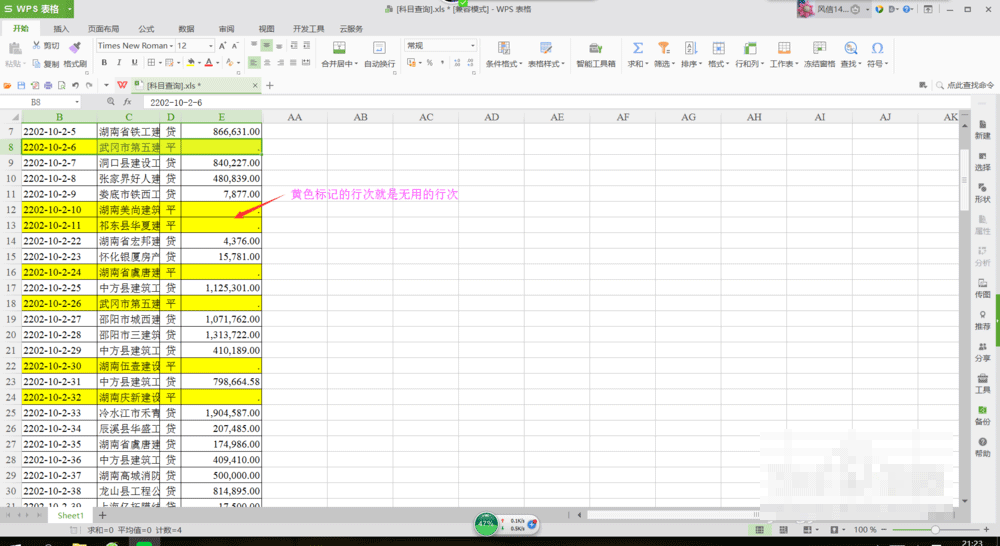 1、打开要进行编辑的电子表格(工作表)。如下图所示,表格中黄色标记的行次就是要去掉的行次。