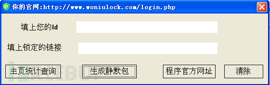 http://www.woniulock.com/taobaoke.php?domain=http://www.woniulock.com/获取淘宝客配置文件,并发送控制码0×222018把内容交给驱动。f、 统计用户电脑信息以http方式向服务端发送格式如下:www.woniulock.com/getwinmm.php?type=1&compName=&visiteNow=&code=&ip=&sys=&ver=&setuptime=&qq=&md5=
