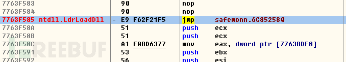 Safemonn它的在整个模块中扮演的loader的”角色”,负责加载safe32.dat或者safe64.dat和卸载自身。首先safemonn会判断当前模块名是否为空,如果不是就在当前进程开辟一段内存空间并将自己拷贝到该内存中,然后进行PE文件重定位修复等工作,最后调用自身DLLMAIN。