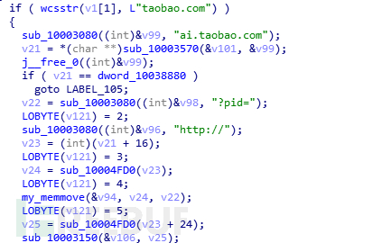 1.如果msvcrt.dll被加载时且当前的进程是浏览器进程会通过命令行参数的方式进行导航劫持,如果浏览器命令行参数中包含电商域名关键词就将命令行参数替换如下。