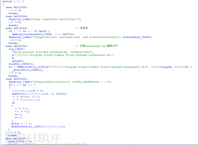 1.注册mini File filter对安全软件厂商的浏览器保护模块进行文件读取过滤,防止安全厂商浏览器保护模块被加载。