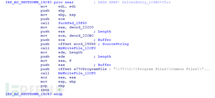 从资源中释放reload.sys,进行异或0xA加密后保存在C:\\ProgramFiles\\Common