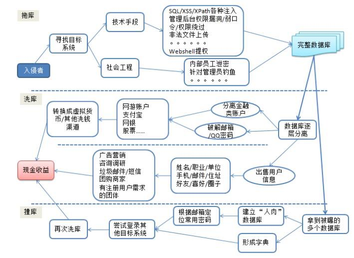 不法分子通过黑客技术对一些安全防护不强的网站进行拖库攻击,或者直接从地下渠道购买来获取大量的用户登录账号信息(主要是手机号,银行卡号,密码,身份证等信息),然后对目标网站(例如银行网银等)进行撞库攻击。