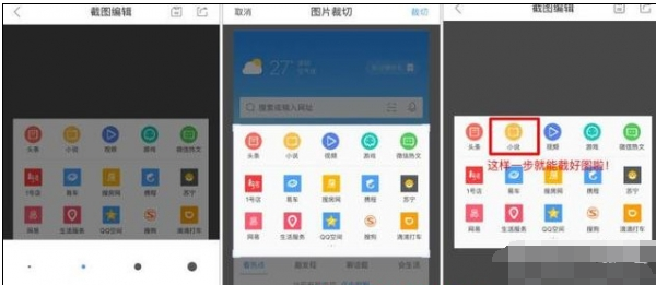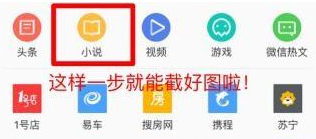 1、以下图为例,需要截取搜索框下的功能框,然后把小说那个图标作为重点标记: